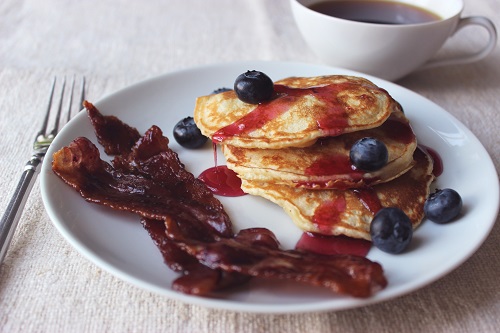 Blueplate Special: Blueberry Pancakes with a Side of Blueberry-Glazed Bacon