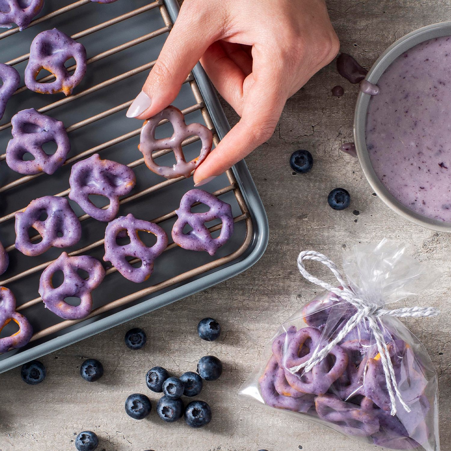 As you celebrate the small wins or just take a moment to relax, these There’s nothing better than starting your morning with a yummy boost of blue … though, to be fair, these breakfast all-stars With these blueberry jams and sauces, the lucky recipient can add a boost of blue to anything, from ice cream and cheesecake to iced coffee and pancakes. (And you can use the jam for the pretzel and fudge recipes below.) These gifts just keep on giving!