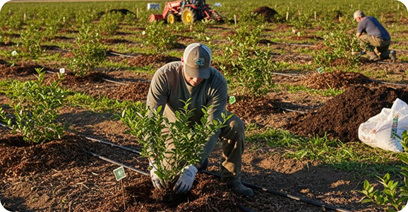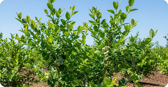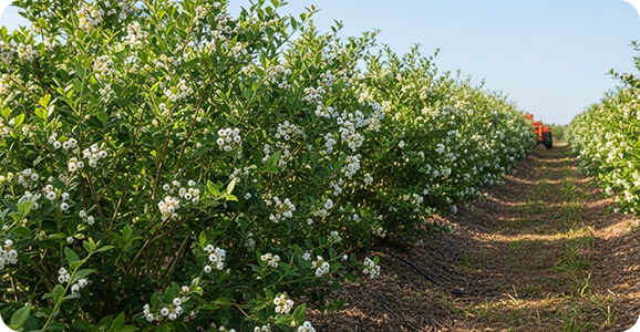 Blueberries thrive with the right start. Growers choose a sunny, well-draining spot, free of competing trees, and spend six months to a year preparing the soil so it’s rich and slightly acidic. Planting multiple varieties encourages pollination and extends harvests. Bushes are spaced to allow airflow, and mulch helps lock in moisture and maintain acidity.
