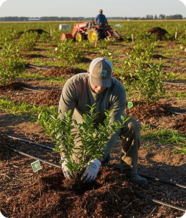 Blueberries thrive with the right start. Growers choose a sunny, well-draining spot, free of competing trees, and spend six months to a year preparing the soil so it’s rich and slightly acidic. Planting multiple varieties encourages pollination and extends harvests. Bushes are spaced to allow airflow, and mulch helps lock in moisture and maintain acidity.