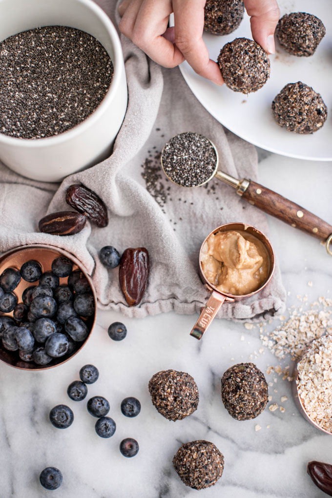 These sticky and delicious blueberry energy balls are your little morning time-savers. Only five ingredients and about five minutes till you have a handful of quick grab-and-go blueberry energy balls that will fill you up and keep you going all day long.