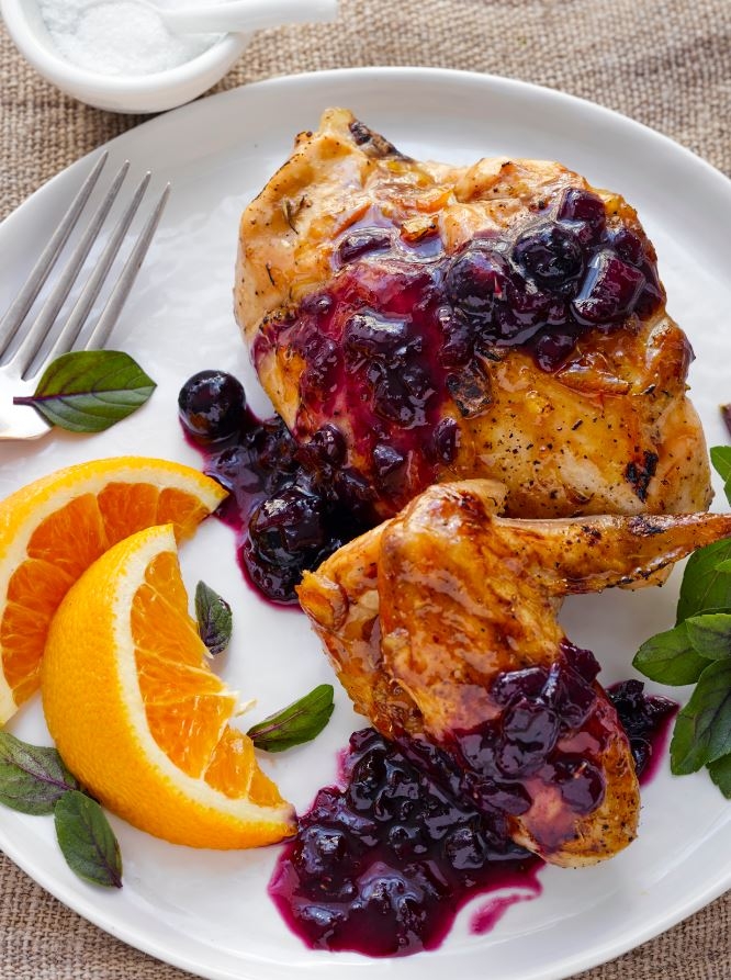 Roasted Chicken with Orange and Blueberry Sauce