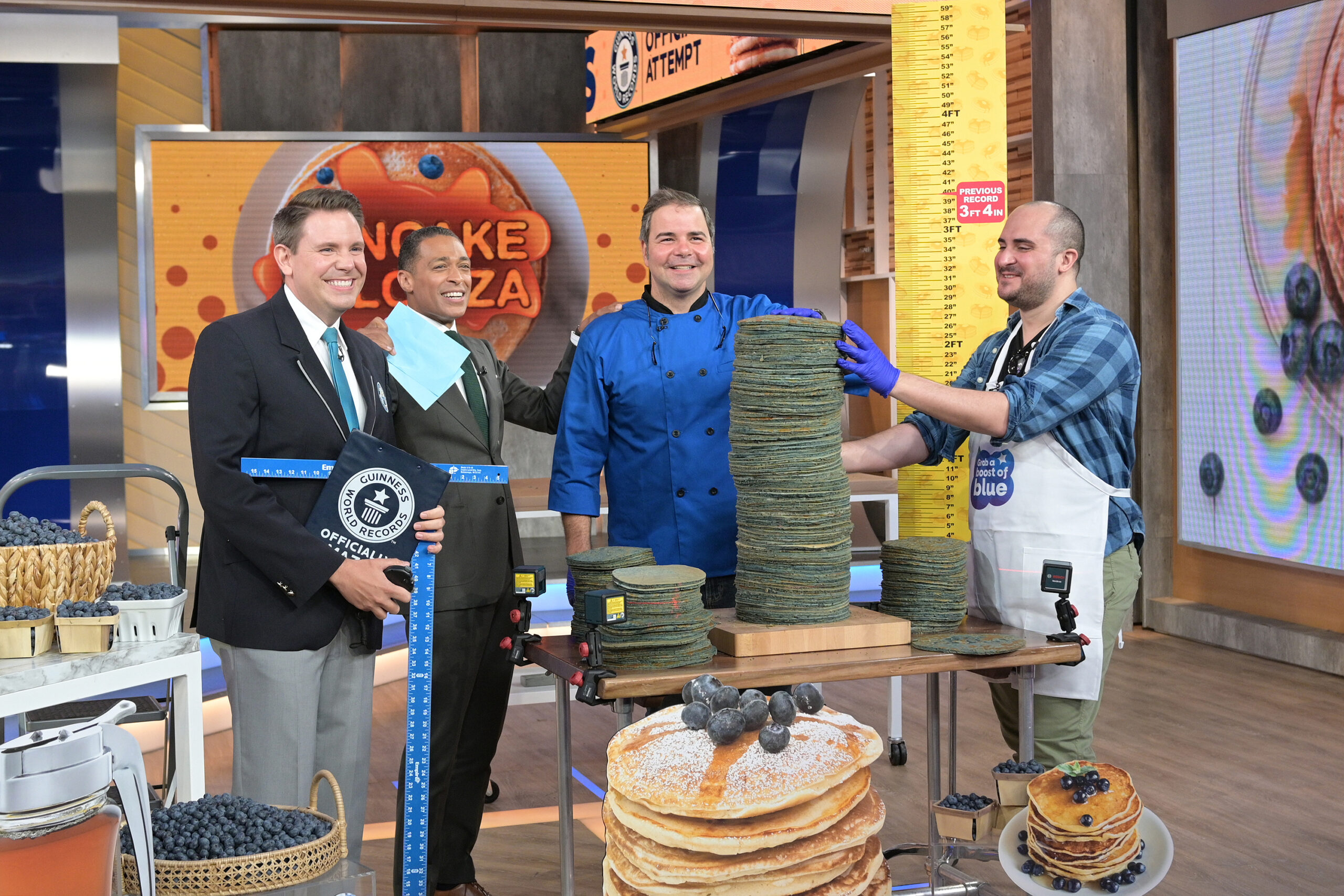 Well, don’t ask us … about the record-breaking part, anyway. We had a blast on Good Morning America, where Chef George Duran kept the crowd laughing as he stacked vibrant blue pancakes like a pro. Unfortunately, it didn’t quite work out as hoped, toppling before we could surpass the record of 3 feet 4 inches (101.8 centimeters). You can watch for yourself in the clip below!
